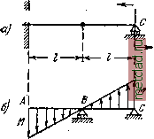 Главная --> Промиздат --> Коэффициент поперечной деформации § 118] ОПРЕДЕЛЕНИЕ ДЕФОРМАЦИИ ГРАФО-АНАЛИТЙЧЕСКЙМ МЕТОДОМ 381 Пример 82. Найти графо-аналитически прогиб посредине пролёта и на концах консолей для балки (фиг. 302). Эпюра изгибающих моментов имеет вид трапеции с наибольшими ординатами Л1 = --Ра. Превращаем эпюру в грузовую площадь, направляя нагрузку вниз. Фиктивная балка будет состоять из двух балочек, защемлённых кондом и поддерживающих подвесную балку АВ, Прогиб посредине пролёта (точка F) равен фиктивному моменту в этой точке от равномерно распределённой нагрузки, делённому на жёсткость: Прогиб в точке С найдём, вычисляя фиктивный момент в этом i-l<fflllllll]b. . А 7 в 4 Ра А Фиг. 302. 4> ![]() Фиг. 303. сечении; он будет вызываться треугольной нагрузкой, расположенной на балке С А, и реакцией подвесной балки Л/= -2 (фиг. 302): Ра-а 2 РаН Ра fC==-Afa--2-=--2---3~- Отсюда прогиб сечения С Mfr Ра Пример 83. Для балки, изображённой на фиг. 303, найти графо-аналитически прогиб сечения В. Построим эпюру изгибающих моментов. В сечении С момент равен-j-; в точке В он равен нулю. На всём протяжении балки момент меняется по закону прямой. Превращаем эпюру М в фиктивную нагрузку и устраиваем фиктивную балку в соответствии с таблицей 22. Рассматривая консоль АВ, находим фиктивный момент в точке В: соответствующий прогиб равен: М1 3EJ § 119. Графо-аналитический метод при криволинейных эпюрах изгибающего момента. Пример 84. Найти величину прогиба посредине балки, загружённой сплошной нагрузкой и показанной на фиг. 304. Площадь эпюры изгибающих моментов определится выражением Следовательно, площадь данной квадратной параболы составляет 2/3 площади описанного прямоугольника 3 8 . 12 Фиктивные опорные реакции будут: Л = Б = = . Фиктивный изгибающий момент в середине пролёта равен сумме статических моментов фиктивных сил, расположенных по одну сторону от среднего сечения балки, допустим, по левую сторону; слева располагаются фиктивные силы: Af и левая половина площади параболы. Плечо Af равно половине пролёта; плечо же половины площади параболы лится следующим выражением (фиг. 305); ![]() Фиг. 304. Фиг. 305. 1лечо /4/ pj оиреде- д:о = - M{x)dx-x ~ 16 Т. е. центр тяжести половины данной квадратной параболы находится в рас- стоянии -jg-/ от опоры балки и в -jg-/ от середины пролёта балки. Следовательно, в середине пролёта -Z 9 Г 9 16 9/t 9 Г 91 24 2 1б-~384 а прогиб посредине пролёта равен: § 119] ГРАФО-АНАЛИТИЧЕСКИЙ МЕТОД ПРИ КРИВОЛИНЕЙНЫХ ЭПЮРАХ 383 Пример 85. Рассмотреть балку, защемлённую одним концом и загружённую равномерно распределённой нагрузкой (фиг. 306, а). Определить величину прогиба свободного конца. Эпюра действительных изгибающих моментов и схема фиктивной балки показаны на фиг. 306, б. Изгибающий момент . в защемлении А фиктивной балки равен произведению площади to всей эпюры на расстояние до её центра тяжести. Площадь эпюры равна I т. е. одной трети, площади описан ного прямоугольника Абсцисса центра тяжести равна: M(x)dx>x gl* Xi - T. e. центр тяжести данной квадратной параболы расположен в 3 4 ![]() Фиг. 306. Фиг. 307. от свободного конца действительной балки и в 4 от места её защемления. Фиктивный изгибающий момен в сечении А будет: АЛ 3 , qi* а прогиб сечения А действительной балки равен: Пример 86. Применяя приём расчленения эпюр и метод сложения результатов действия сил, определить прогиб и угол поворота в сечении С балки ABC, лежащей на двух опорах с ко