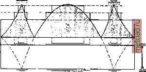 На фиг. 316 заштрихована эпюра действующих изгибающих моментов. Ступенчатая линия - эпюра допустимых изгибающих моментов.