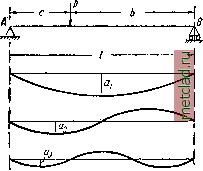 Главная --> Промиздат --> Коэффициент поперечной деформации Отсюда Примем Тогда Pda, г= 1 da EJ \ / {х) dx. {x)dx /()=sin. (22.2) 4S JEJ что чрезвычайно близко к точному значению прогиба посредине пролёта Р Р рассматриваемой балки: Достаточная точность получилась благодаря тому, что выбранная форма кривой f{x) удовлетворяет б опорных сечениях не только условиям для прогибов у, но и для изгибающих моментов, пропорциональных у\ Если бы на балке было расположено несколько сил Pi, Pg, Pg,... на расстояниях Ci, Сг, Cg,... от начала координат (левого конца балки), то работа dAp выразилась бы формулой dAp = Pi dafid) + Padaj{c2) + ..., и для 1 мы получили бы выражение . PJ(ci) + P,f(c,) + ... (х) dx Рассматривая сплошную нагрузку как сумму отдельных элементарных сил, мы можем путём интегрирования получить ai и для этого вида загружения балки. При действии пар сил Ми Л2, Из, .. множителями при них будут/41),/42),... По закону сохранения энергии dUp = dU § 135. Разложение уравнения изогнутой оси в тригонометрический ряд. Изложенный в предыдущем параграфе приём замены изогнутой оси балки одной синусоидой не при всех случаях нагрузки может дать такой удовлетворительный результат, как в рассмотренном примере. В этих случаях целесообразно представить изогнутую ось балки в виде суммы ряда синусоид, т. е. разложить уравнение изогнутой оси в бесконечный тригонометрический ряд, который обычно быстро сходится и в пределе даёт точное решение. Общее выражение для изогнутой осп в случае балки на двух опорах принимает вид: у = Ql sin J- + sin ~j- +... ![]() . -r a, t sm -+... sm-+ ... (22.3) Фиг. 351. Последовательные синусоиды изображены на фиг. 351. Каждый член этого ряда и его производные удовлетворяют условиям на опорах А и В, При выборе формы ряда надо иметь в виду, что так как в выражение входит квадрат второй производной от у, то удовлетворение условий для этой производной очень важно; в противном случае можно получить большую погрешность. Условие же для третьей производной от у (для поперечной силы) может быть нарушено без особого влияния на точность результатов. Для определения коэффициентов Си as, fls,..., я следует применить, как и в предыдущем примере, закон сохранения энергии. Формула для вычисления потенциальной энергии деформации принимает вид: sm -;;--... - ~- sm При возведении в квадрат мы получим под интегралом слагаемые двух видов: rzV.* . пт.х sm2- 2апа, . пт.х . mrvx sm -7- sm --. Интегрируя, находим: 3 -7Г sm2 flfA = д2--- /7? nffin* . п-.х . тт.х . 2в уя -л- sin -7- sin -- dx = 0. § 135] РАЗЛОЖЕНИЕ УРАВНЕНИЯ ИЗОГНУТОЙ ОСИ В РЯД 431 Таким образом, выражение для потенциальной энергии деформации примет вид: л=оо f/ = ( I + + ... + naf, + ...] = jgZ 2 nal (22.4) Потенциальная энергия деформации выражена в функции обобщённых координат и представляет собой сумму количеств потенциальной энергии, накапливающихся при изгибе балки отдельно по каждой синусоиде. Переведём балку в смежное, очень близкое, положение равновесия и составим уравнение сохранения энергии. Мы можем перевести балку в смежное положение равновесия, изменяя на dai только один какой-либо из коэффициентов flf , оставляя остальные без перемен. Тогда в выражения (22.3) вместо слагаемого а sm-j- войдет величина (aj + fifaj) sm -у-, а все остальные слагаемые сохранят своё значение. При этом изменится потенциальная энергия деформации, соответствующая только изгибу балки по си-. n-ix нусоиде sm -. Таким образом, приращение потенциальной энергии деформации балки за счёт изменения коэффи