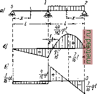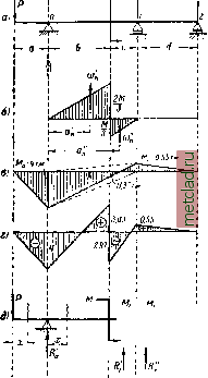 Главная --> Промиздат --> Коэффициент поперечной деформации Данные к уравнению трёх моментов для опоры 2 (я = 2); = 0)3 = 0. Тогда Ali4 + 2M,(4 + /3) = -6(l -i]. (23.33) Теперь в уравнениях трёх моментов (23.32) и (23.33) положим /1 = /з=:0, а 4 = /; тогда получаем систему М,1-\-2М.г1 = - РаЬ {\ +~ Решая эту систему, находим: РогЬ /2 2 2- Момент под грузом Мр равен при х = а: М.а 2PaW , - гаЬ МЬ Mp=P--{--j- При действии на балку с защемлёнными концами равномерно распределённой нагрузки q (фиг. 390, а) опорные моменты Мх и М равны; заменяя защемление добавочным пролётом, составляем уравнение трёх моментов для сгшшппшпшж. Фиг. 390. опоры /: 2Ж,(/1 + 4) + Ж4/а = 24- Полагая /, = О, 4 = А = = Mi, получаем: Наибольший положительный изгибающий момент будет посредине пролёта; он равен Эпюра моментов показана на фиг. 390,6. § 147. Примеры расчёта неразрезных балок. Пример 100. Рассмотрим балку (фиг. 391, а). Единственной лишней неизвестной будет опорный момент Mi. Эпюрой от внешней нагрузки дли основной системы будет парабола на протяжении второго пролёта с наи- большей ординатой q , Уравнение трёх моментов имеет вид Реакции опор равны: --1б7-~1б -Т~1б/- + Тб <-si Вычисляем поперечные силы и изгибающие моменты: (?(x). = + /? =-J, M(x),=+R,x=-ix; Q (X), =-R, + qx = --f(V-l 6x), M (X), = R,x-- = (V- 8x). Изгибающий момент во втором пролёте обращается в нуль при х = / и пе- ![]() ![]() Фиг. 391. Фиг. 392. реходит через максимум при A:=yg/; максимальное значение момента равно 49/2 512 Эпюры момента и поперечной силы показаны на фиг. 391, б и в. Пример 101. Возьмём балку с нагрузкой q на обоих пролётах (фиг. 392, а). Выдерживая тот же порядок вычислений, получим: естественно, что против предыдущего примера момент удвоился. Опорные реакции имеют значения: Поперечные силы и изгибающие моменты для левого пролёта выразятся формулами: Q {х\ = Ri~ qx = - / - qx\ М (х), = - = 1 qlx ~ if. Для правого пролёта решение аналогично. При А = 3 8, т. е. при 0(x) = 0, моменты будут иметь наибольшее положительное значение: ![]() - 128 qr-: 7V)\A-i и е. TrvM>- -Щ Приме т. е. наибольшим по абсолютной величине будет изгибающий момент над опорой Mj. Эпюры показаны на фиг. 392, ! 116 ипншшшшш р 102. Двухпролётная с ; /J консолью на левом конце балка загру-4 жена силой Р на конце консоли и мо-! ментом М в двух третях первого пролёта I . (фиг. 393, а). Построить эпюры М{х) и Q{x). Числовые значения такие: Фиг. 393. Р = 2 т; М = 6 тм; л = 2 ж; Ь = 4 м; с = 2 м; d = 5 м. Составляем уравнение трёх моментов, пользуясь фигурой 393, б: Ра(Ь + с) + 2М,ф + с + )= = - 6 Подставляя числовые значения 1 1 \ 2 * 3 * 3 + с 2 3 -3- М-с- Ь + с - 2.2.6 + 2Mi (6 + 5)== - 6 и, решая, получаем 4 + 1 \2 3 ° 3 6 2*3 4 + 2 У Ml = 0,545 тм S 0,55 гл . |