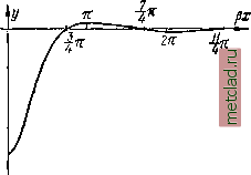 ной балки, нагружённой сосредоточенной силой Р. Эта ось представляет собой волнообразную кривую с постепенно затухающими ординатами. Для большей общности по горизонтали отложены отвлечённые величины рд: вместо абсцисс х.