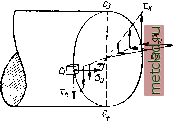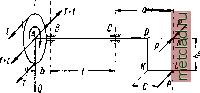 Главная --> Промиздат --> Коэффициент поперечной деформации ГЛАВА XXVin. СОВМЕСТНОЕ ДЕЙСТВИЕ КРУЧЕНИЯ И ИЗГИБА. § 166. Определение изгибающих и крутящих моментов. В главе XI была разобрана задача проверки прочности при кручении. Однако такие части машины, как валы, редко работают на чистое скручивание. Даже прямой вал при работе изгибается собственным весом, весом шкивов, натяжением ремней. Таким образом, большинство скручиваемых элементов машин работает на совместное действие кручения и изгиба. К числу подобных же деталей относятся и коленчатые валы. При расчёте элементов, работающих одновременно на изгиб и кручение, в первую очередь надо выяснить расчётные значения изгибающих Л1 и крутящих Жк моментов. Покажем это на примере прямого вала круглого сечения со шкивом и кривошипом. Схема вала изображена на фиг. 443 и 444. На ![]() Фиг. 443. ![]() Фиг. 444. левом конце вала расположен шкив весом Q; на него действуют натяжения ремня Tut {Tt)\ на правом конце на палец кривошипа действует горизонтальная сила Р\ рассмотрим момент, когда кривошип расположен вертикально. Размеры конструкции даны на чертеже. Определим изгибающие и крутящие моменты для вала AD. Силы Т Vi t (натяжения ремня), действующие на шкив, заменяем силой T-\-ty приложенной в центре шкива, и парой {Т - Оо - радиус шкива. Сила T-[-t вместе с весом шкива Q производит изгиб вала; пара же (T - t)R, скручивая вал, уравновешивается парой, приложенной к его правому концу. Заменяем силу Р, действующую на палец кривошипа, такой же силой Р, приложенной к валу на продолжении его оси в точке Л, и парой с моментом Ph. Таким образом, к концам вала приложены пары Ph и {Т - 00* при равновесии, равномерном ходе машины, моменты этих пар равны и дают скручивающий момент Му = Рк = = iT-t)R,. Если известны число оборотов вала в единицу времени п и передаваемая шкивом мощность /V, то величина крутящего момента Мк § 1661 ОПРЕДЕЛЕНИЕ ИЗГИБАЮЩИХ И КРУТЯЩИХ МОМЕНТОВ может быть найдена по формуле (11.3) § 55: Жк = -~-; тогда Р = - Т= fy ) . где т=.. Что же касается изгиба, то на вал действуют и вертикальные {Q) и горизонтальные (T-\-ty Р) силы. Поэтому построим эпюр1ы моментов для тех и других (фиг. 445, а и б)у считая опоры вала в подшипниках В и С шарнирными; одна из них имеет продольную подвижность. Имея эпюры моментов от вертикальных и горизонтальных нагрузок, можем для каждого сечения вала найти полный изгибающий момент Жи как геометрическую сумму обеих составляющих; на фиг. 446 показано такое геометрическое сложение векторов, изображающих изгибающие моменты для сечения В; для него полный изгибающий момент будет равен 11 I С\ D Н I M,=bVQ-Y(T-t)\ ![]() (T+Vb Для каждого сечения мы будем иметь свою плоскость действия Фиг. 445. изгибающего момента; но так как вал имеет круглое поперечное сечение, у которого моменты сопротивления относительно всех центральных осей одинаковы, то без влияния на результаты расчёта мы можем совместить плоскости изгибающих моментов для всех сечений и построить суммарную эпюру, располагая её в плоскости чертежа. Это и сделано на фиг. 445, в. Не приводя доказательства, заметим, что между сечениями Б и С эпюра полного изгибающего момента Al будет огра- Фиг. 446. ничена кривой, не имеющей максимума. Из очертания эпюры видно, что опасное сечение будет либо в подшипнике В, либо в подшипнике С в зависимости от соотношения числовых данных. ![]() Плоскость изгиба ![]() Фиг. 447. § 167 Опред