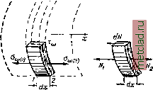 Главная --> Промиздат --> Коэффициент поперечной деформации § 17.8] ВЫЧИСЛЕНИЕ КАСАТЕЛЬНЫХ НАПРЯЖЕНИЙ § 178. Вычисление касательных напряжений в сечении тонкостенного стержня. Теперь, когда все силовые факторы определены, остаётся произвести вычисление касательных напряжений, возникаюпдих в сечении стержня под действием внешнего крутящего момента Л1ф = Л1, + Ж,. О касательных напряжениях от чистого кручения уже было сказано в §§ 173, 176 и 67 [формулы (11.37)]. Для определения секториальных касательных на- пряжений воспользуемся той - f /Л:>2 же методикой, какая была принята при выводе формулы Журавского (§ 91). Вырежем из рассматриваемого стержня (фиг. 467) элемент длиной dXy одна из граней которого (например, нижняя) свободна от касательных напряжений (фиг. 483). Элемент находится в равновесии под действием секториальных нормальных и касательных напряжений. Обозначим нормальные напряжения, действующие на левую грань 7-7 и на правую 2-2 соответственно; ![]() Фиг. 483. а>(1)- И о. По этим же граням действуют секториальные касательные напря-жения т. По закону парности касательные напряжения действуют также по площадке, параллельной оси jc. Эти касательные напряжения должны сложиться в усилие, уравновешивающее разность нормальных усилий, действующих в сечениях 1-1 и 2-2 по торцевым площадкам отсечённого элемента. Величины нормальных усилий соответственно равны: отс отс с (odf п dF и N. B+dB idF. Так как интеграл редставляет собой секториальный стати- ческий момент отсечённой площади торца элемента [см, формулу (30.14)], то а сдвигающая сила, уравновешиваемая секториальными касательными напряжениями, равна: dN=N.2 - N, = -jSL ♦со Отсюда величина искомых секториальных касательных напряжений будет: dN dB dxb dxbJ,/ Имея в виду, что - = М (30.24), получим: (30.32) Структура полученной формулы совершенно аналогична структуре формулы Журавского для вычисления касательных напряжений при поперечном изгибе. Заметим, что величина секториальных касательных напряжений сравнительно невелика. Однако, несмотря на это, они принимают на себя значительную долю внешнего момента, так как плечи соответствующих касательных усилий обычно велики (см., например, фиг. 466, б), В формулы для секториальных напряжений (30.19) и (30.32) входят секториальные координаты и новые секториальные геометрические характеристики сечения, методы определения которых приводятся ниже (см. §§ 179 и 180). § 179. Вычисление секториальных площадей. Построение секториальных эпюр. Выше было показано, что секториальная площадь равна (30.7): где г - перпендикуляр, опущенный из полюса А на направление касательной к средней линии сечения, проведённой через данную точку (фиг. 484). Пределы интегрирования определяются выбором начала координат, т. е. того луча AM, от которого ведутся отсчёты. Точка Ж, лежащая на средней линии сечения, называется началом отсчёта. Как известно (§ 174), интеграл J равен удвоен- ной площади заштрихованного на фиг. 484, а сектора, ограниченного лучами AM, An и контуром средней линии сечения. Для контура, ![]() Фиг. 484. § 179] ВЫЧИСЛЕНИЕ СЕКТОРИАЛЬНЫХ ПЛОЩАДЕЙ ограниченного прямыми линиями, секториальная площадь равна удвоенной площади треугольника, заключённого между линией контура и лучами AM и An (фиг. 484, б). Нетрудно видеть, что каждой точке сечения соответствует своя секториальная площадь. Поэтому секториальную площадь можно рассматривать как сектор