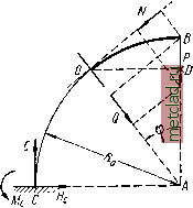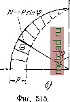 ![]() ![]() На фиг. 515 показаны эпюры М, N и Q. -За нулевую линию принята ось стержня. Ординаты отложены по радиусам кривизны стержня. § 186. Вычисление напряжений от сил Q и N. Напряжения о и т по проведённому нами сечению тп уравновешивают систему внешних сил (Pj, Pg, Р3), приложенных к оставленной части, или, что всё равно, систему сил N и Q (фиг. 511 и 512). Сила Q, лежащая в плоскости сечения, может быть уравновешена лишь касательными напряжениями т, сумма которых должна быть равна и противоположна силе Q. Нормальная сила N и изгибающий момент Ж, приложенные к оставленной части, могут быть уравновешены лишь нормальными напряжениями. Условия равновесия оставленной части позволяют найти лишь суммарные внутренние усилия, передающиеся от отброшенной части на оставленную; само же распределение напряжений по сечению таким путём получено быть не может, - мы имеем дело со статически неопределимой задачей, для решения которой необходимо рассмотрение деформаций стержня. Однако в отношении напряжений, вызванных силами Q и N, искомый результат можно получить проще. Теоретические исследования показывают, что распределение касательных напряжений в кривых стержнях близко к тому, что мы имеем для прямых. Поэтому обычно и для кривых стержней пользуются формулами, выведенными для прямых балок: (15.3) Это не точно; применяя те же методы, что и при вычислении касательных напряжений в балках, можно вывести и для кривых стержней более точные формулы для вычисления т. Однако практически вполне допустимо пользование формулой (15.3). Условие прочности по отношению к касатель- cfsj ным напряжениям в таком случае для кривых стержней имеет вид (15.7): Фиг. 516. maxmax , , Стах =--hl. Определим теперь напряжения, вызываемые нормальной силой N, Рассматривая элемент кривого стержня длиной ds под действием усилий N (фиг. 516), видим, что эти силы, приложенные в центрах тяжести поперечных сечений, соответствуют простому осевому растяжению или сжатию выделенного элемента. Поэтому и соответствующие напряжения будут нормальными к сечению и равномерно распределёнными по его площади F: Знак напряжений определится знаком силы N. § 187. Вычисление напряжений от изгибающего момента. Изгибающий момент М может быть уравновешен, как и в прямой балке, только нормальными напряжениями, приводящимися к паре, расположенной в плоскости действия внешних сил, по направлению обратной, а по величине равной моменту М. Задача нахождения закона распределения напряжений по сечению и формул для их вычислений является статически неопределимой и требует, как это было и при изучении изгиба прямой балки, помимо составления и решения уравнений статики, рассмотрения соответствующих деформаций и составления дополнительных уравнений. При определении напряжений от сил Q и N мы обошлись без подобных вычислений, |