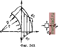 Главная --> Промиздат --> Коэффициент поперечной деформации График, изображающий распределение напряжений по толщине цилиндра в случае pi = О, дан на фиг. 543. Так как по абсолютной величине продольное растягивающее напряжение обычно значительно меньше с, и о, то прочность цилиндра определяется этими последними. Применяя третью теорию прочности (наибольших касательных напряжений), получаем, что наибольшая разность главных напряжений, равная (для случая /71 = 0) ![]() П - П (32.11) будет иметь место в точках внутренней поверхности цилиндра и всегда будет по абсолютной величине значительно больше внутреннего давления. Таким образом, остаточные деформации появятся прежде всего у внутренней поверхности цилиндра, когда (j - <r)max УДт равно пределу текучести материала; борьба с их появлением путём увеличения наружного радиуса ri практически безнадёжна, - с увеличением п растут и числитель, и знаменатель формулы (32.11); поэтому разность главных напряжений (j - г)тих и убывает, но очень медленно. Однако момент появления пластических деформаций у внутренней поверхности цилиндра далеко не соответствует исчерпанию грузоподъёмности конструкции; для правильной оценки прочности цилиндра необходимо пе- рейти к расчёту по допускаемым нагрузкам. Полное исчерпание грузоподъёмности произойдёт тогда, когда кольцевая пластическая зона, распространяясь от внутренней поверхности цилиндра, дойдёт до наружной; состояние разрушения наступит тогда, когда материал у наружной поверхности достигнет состояния, при котором произойдёт разрыв. Подробное исследование работы толстостенных цилиндров при наличии остаточных деформаций дано в нашей работе ). На фиг. 544 показано отношение внутреннего давления рз, при котором пластическая зона охватывает всё сечение, к давлению, соответствующему началу пластических деформаций р1. Оказывается, что действительная грузо- получаемой при обычном методе расчёта. 2,г гр </ W i5 Фиг. 544. подъемность значительно выше ) Б е л я е в Н. М. и С и н и ц к и й А. К., Напряжения и деформации в толстостенных цилиндрах при упруго-пластическом состоянии материала. Известия Отделения технических наук Академии Наук СССР>, 1938. Упругая грузоподъёмность толстостенных цилиндров может быть поднята путём создания начальных напряжений. Для этого необходимо изготовить цилиндр, составленный из двух цилиндров, вставленных один в другой; наружный диаметр внутреннего цилиндра делается несколько больше внутреннего диаметра наружного цилиндра; после надевания наружного цилиндра в нагретом состоянии на внутренний и его остывания по поверхности соприкасания возникнут реакции, сжимающие внутренний и растягивающие внешний цилиндры. Наличие этих начальных напряжений улучшает работу составного цилиндра при внутреннем давлении, как видно из приведённого ниже расчёта. На фиг. 545 изображён составной цилиндр после остывания. Напряжения в тангенциальном направлении будут равны: для наружного цилиндра (растяжение) для внутреннего цилиндра (сжатие) .2 #.2 Я -2 ![]() На фиг. 546 показаны кривые распределения этих начальных напряжение, при следующих числовых данных: П = 11,50 см\ Га = 5,70 см\ п = 8,25 см\ рг = 280 kzjcm. Для наружного цилиндра напряжения у наружной поверхности равны: % = +РТ, + у внутренней поверхности Ja = + Я* = + Z- Для внутреннего цилиндра напряжения у внутренней поверхности равны: 