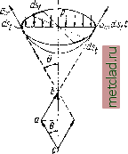 Отсюда 27СХС COS 0 = КХр -f Ру, 2t cos 6 2Tzxt COS e (32.15) ![]() Фиг. 550. Зная уравнение меридиональной кривой, можно найти X vi Ру для каждого значения у, и стало быть, найти а, а из уравнения (32.14) и Например, для конического резервуара с углом при вершине *а, наполненного жидкостью с объёмным весом y на высоту /г, будем иметь: Р;;, = оо; xy\ga\ Р, = у Т.Д=-i-ТтУ tg2 а; COSa |