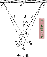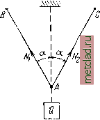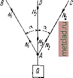 Главная --> Промиздат --> Коэффициент поперечной деформации ОТДЕЛ П. СЛОЖНЫЕ СЛУЧАИ РАСТЯЖЕНИЯ И СЖАТИЯ. ч\\\\\\\\\\\\\\У ГЛАВА IV. РАСЧЁТ СТАТИЧЕСКИ НЕОПРЕДЕЛИМЫХ СИСТЕМ ПО ДОПУСКАЕМЫМ НАПРЯЖЕНИЯМ. § 19. Статически неопределимые системы. Умение вычислять деформации стержней при растяжении и сжатии дат нам возможность установить, насколько изменяются формы и размеры частей конструкций при действии внешних сил. Обычно эти изменения формы настолько незначительны, что кажутся лишенными практического значения. Однако есть целый класс конструкций, для которых проверка прочности и определение сечения отдельных элементов невозможны без умения определять деформации; это так называемые статически неопределимые конструкции (системы); нахождение усилий в их элементах представляет собой статически неопределимую задачу. Во всех примерах, которые мы рассматривали до сих пор, усилия, растягивающие или сжимающие стержни, определялись из условий статики твёрдого тела. Так, в случае подвески груза Q на двух стержнях (фиг. 38) АВ и АС мы находим усилия и Лз, растягивающие эти стержни, из условия равновесия точки Л. Три силы, приложенные в точке Л, должны удовлетворять двум уравнениям равновесия, а именно: сумма проекций этих сил на каждую из двух координатных осей должна равняться нулю. Таким образом, число неизвестных (два) равно числу уравнений (два), и усилия и из этих уравнений могут бы1ь найдены. Эта задача - статически определимая. Иначе будет обстоять дело, если груз Q будет подвешен на трех стержнях (фиг. 39). В этом случае точка А находится в равио- ![]() Фиг. 38. \\\\\\\\\\\\\\\\\\\\ § Рсии под действием четырёх сил: Q, Лз, и N, причём три последние являются неизвестными. Уравнений же равновесия можно написать по-прежнему лишь два. Таким образом, число неизвестных на единицу больше числа уравнений - конструкция однажды статически неопределима, и задача не может быть решена только с помощью уравнений статики. Необходимое для решения задачи дополнительное уравнение можно составить, пользуясь теми представлениями о свойствах материалов, которые мы получили, переходя от теоретической механики к сопротивлению материалов. Речь идёт об учёте деформируемости материала. Дополнительное уравнение мы сможем найти, изучая те деформации, которые испытывает конструкция. Оказывается, что всегда можно найти столько дополнительных уравнений, сколько нам нужно, чтобы полное число уравнений вместе с условиями статики равнялось числу неизвестных. Эти дополнительные уравнения составляются на основании одного общего принципа, они должны выразить условия совместности деформаций системы. Всякая конструкция деформируется так, что не происходит разрывов стержней, разъединения их друг от друга, или не предусмотренных схемой сооружения перемещений одной части конструкции относительно другой. В этом и заключается совместность деформаций элементов системы. Общий метод расчёта статически неопределимых систем таков. Сначала следует выяснить, какие усилия необходимо определить; затем написать все уравнения статики твёрдого тела; после этого - составить дополнительные уравнения в таком числе, чтобы можно было найти все неизвестные усилия. Ход решения выясним на взятом частном примере (фиг. 39). Пусть крайние стержни, имеющие равные площади поперечных сечений,- стальные, средний же