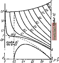 Главная --> Промиздат --> Коэффициент поперечной деформации § 219] ВРАЩАЮЩИЙСЯ диск ПОСТОЯННОЙ толщины между точками А и В, имеют и то и другое ускорения. Ограничиваясь здесь учётом сил инерции, возникающих в шатуне в результате одного только центростремительного ускорения, рассмотрим такое положение шатуна, в котором он перпендикулярен кривошипу, а следовательно, направление центростремительного ускорения в точке А перпендикулярно к оси шатуна. Предположим, что центробежные силы инерции q везде перпендикулярны осп шатуна и по длине его меняются по л1шейному закону от q = qQ в точке А до = 0 в точке В, Это предположение будет тем ближе к истине, чем больше длина шатуна по сравнению с длиной кривошипа. Шатун будем рассматривать как балку на двух шарнирных опорах А и В. Изгибающий момент достигает наибольшего значения при х = л/ - yY отсчитывается от точки В) и равен (см. § 73): Так как д = - qol 9 /3 W ~9 /3 Wg § 219. Вращающийся диск постоянной толщины. Значительный интерес представляет задача о напряжениях и деформациях в быстро вращающихся валах и дисках. Высокие скорости вращения валов паровых турбин обусловливают появление в валах и дисках значительных центробежных усилий. Вызванные ими напряжения распределяются симметрично относительно оси вращения диска. Рассмотрим наиболее простую задачу о расчёте диска постоянной толщины. Расчёт такого диска положен в основу некоторых приближённых способов расчёта дисков любого профиля. Воспользуемся некоторыми результатами, полученными при выводе формул для расчёта толстостенных цилиндров (§ 197). Предположим, что по толщине диска, принимаемой равной единице, напряжения о. и не меняются; осевое напряжение будем считать равным нулю. Составим условия равновесия элемента АВ, выделенного из диска двумя меридиональными сечениями и двумя концентрическими цилиндрическими поверхностями (фиг. 586). В данном случае, кроме сил, действующих по граням элемента АВу необходимо принять во внимание также и силу инерции ![]() Фиг. 586. направленную вдоль радиуса от центра к внешнему контуру диска. Вместо уравнения (32.1), выведенного в § 197, будем иметь: dr g (35.4) Уравнение (32.4) того же параграфа (условие совместности деформаций) остаётся в силе и для данной задачи, т. е. Подставляя в это уравнение значение разности - из (35.4), находим: (35.5) [м: (35.6) Дифференцируя уравнение (35.4) по г и подставляя в него вместо его значение из формулы (35.6), получаем линейное дифференциальное уравнение - dr Td?r) Интегрируя это уравнение, находим: Из (35.4) и (35.7) следует, что (35.7) (35.8) В формулах (35.7) и (35.8) A и В - постоянные интегрирования, которые должны быть определены из условий на контуре диска. При определений постоянных рассмотрим два случая: 1) диск с отверстием в центре и 2) сплошной диск. При этом вначале предположим, что края диска свободны от внешних усилий. Для диска с центральным отверстием напряжение а. должно быть равно нулю как при г = Tj, так и при г = Га (фиг. 586). Эти условия на контуре при подстановке их в формулу (35.7) приводят к уравнениям: откуда Пидставляя значения Л и fi в формулы (35.7) и (35.8), получаем: § 219] ВРАЩАЮЩИЙСЯ ДИСК ПОСТОЯННОЙ толщины Полагая для краткости можем написать: 7а)2г = р и 3 + х - 1 + а2 (35.9) (35.10) Замечаем, что напряжение обращается в нуль при р = 1 и р = а, т. е. на внутреннем и наружном контурах диска; при значениях р между 1 и а напряжение положительно и, как 