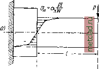 О 10 20 до От На фиг. 622 и 623 построены диаграммы для серого чугуна; механические свойства этого материала таковы: Ов=78 кг/мм; а+ = 22 кг/мм; o i = = 7,3 кг/мм и ао = = 46лгг/л ж = 0,59с7в; oq - предел выносливости для одностороннего цикла (напряжения меняются от нуля в одну сторону, г - 0) при сжатии. Эти диаграммы свидетельствуют о том, что и при переменных нагрузках чугун на сжатие работает значительно лучше, чем на растяжение. § 239. Местные напряжения. Опыты показывают, что для образования треш.ины усталости имеет значение величина так называемых местных напряжений, возникающих или в местах резкого изменения призматической формы стержня (надрезы, выточки, переходы), или при повреждениях его поверхности (царапины, риски), или в местах нарушения сплошности материала (пустоты, включения, трещины). Все перечисленные факторы, вызывающие развитие местных напряжений, повышатели напряжений , мы в дальнейшем для краткости будем обозначать термином фактор (источник) концентрации >; 7(? 00 50 40 до 20 10 Фиг. 623. Механические свойства этих ![]() в зависимости от степени резкости нарушения призматической формы стержня или сплошности материала мы будем говорить о резком или смягчённом характере фактора концентрации. Местные напряжения по своей величине обыкновенно значительно превышают те наибольшие напряжения раху которые получаются при отсутствии факторов концентрации, так называемые общие напряжения: р = ajnaxy 1 - коэффициент концентрации напряжений. Величина (а-1) характеризует степень превышения местных напряжений над общими. На фиг. 624, а показаны местные напряжения при изгибе, вызванные резким изменением размеров поперечного сечения стержня; на фиг. 624, б для сравнения показано распределение напря- жений в случае плавного изменения диаметра стержня при отсутствии местных напряжений. На фиг. 625 изображены местные напряжения, вызванные наличием отверстия в растянутом стержне. Из этих диаграмм видно, что местные напряжения захватывают весьма небольшой объём и, быстро затухая, падают до величины соответствующих общих напряжений. Местные напряжения даже при линейном общем напряжённом состоянии обычно образуют систему, соответствующую более сложному напряжённому состоянию. На фиг. 625 показано, что, помимо напряжений по сечениям, перпендикулярным к оси стержня, у отверстия возникают и добавочные меньшие нормальные напряжения по площадкам, перпендикулярным к первым (aj). Величина коэффициента концентрации зависит, главным образом, от степени резкости нарушения призматической формы стержня. Если переход от большего диаметра стержня к меньшему сделан резким, под прямым углом, то мы получаем наибольшее значение ау если же этот переход смягчён галтелью того или иного радиуса, то величина значительно снижается и может оказаться даже равной единице (фиг. 624, а п б). Для определения коэффициентов концентрации применяют следующие методы. В ряде случаев (например, растяжение и изгиб Фиг. 624. tttlMt ТТГТТТ Фиг. 625. стержней с отверстиями и выточками) удаётся найти величину местных напряжений при помощи методов теории упругости. Затем широкое распространение нашёл метод экспериментального определения местных напряжений путём просвечивания поляризованным светом плоской напряжённой модели из прозрачного материала (стекло, целлулоид, бакелит); по получающейся при этом окраске ра