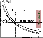 при расчётах на ползучесть по минимальной скорости ползучести исходное расчётное уравнение при линейном напряжённом состоянии материала может быть написано в следующем виде: ![]() так как ;[tn]P, (39.8) Из (39.8) следует, что [а]=а = {1}\ (39.9) Условие прочности в напряжениях напишется так: a[a] = f- . (39.10) Б. Само собой разумеется, расчётах на ползучесть по допускаемой деформации или рости необходимо соблюдение время срока службы детали деформация разрушению материала, но и был обеспе- что при величине её ско-условия. Фиг. 664. чтобы при данной температуре за ползучести не только не привела к чен некоторый запас прочности против возможности такого разрушения. Таким образом, точки i, и (фиг. 664) на различных кривых ползучести 7, 2 и 5, отвечающие абсциссам tju д2 и и ординаты [e]i, [г] и [ejs, обязательно должны находиться на участках первой или второй стадии ползучести. Это обстоятельство должно быть проверено расчётом и поэтому требует специального исследования. Расчёты по величине допускаемой деформации ползучести или её скорости, как уже было показано, могут быть заменены расчётами по соответствующим допускаемым напряжениям - пределам пол- зучести ag или ах,. При этом необходимо убедиться, что величина а. (jg или а.) не превосходит величины допускаемого напряжения, представляющего некоторую долю предела прочности материала при данной температуре. Известно (§ 253), что предел прочности материала при высоких температурах очень сильно зависит от продолжительности испытания; сравнительно небольшое увеличение длительности испытания вызывает значительное уменьшение предела прочности. При некоторых температурах (например, для малоуглеродистой стали при температурах выше 800°) испытуемый образец может быть разрушен нагрузкой, вызывающей напряжение ниже предела пропорциональности материала при комнатной температуре, если эта нагрузка будет действовать достаточно продолжительное время. Поэтому прочность металлов при высоких температурах в настоящее время характеризуют не величиной обычного предела прочности, определяемого путём кратковременных испытаний, а величиной так называемого предела длительной прочности (jg). Этим термином обозначают такое напряжение при данной постоянной темпера- туре, при действии которого в течение заданного промежутка времени в конце этого промежутка произойдёт разрушение материала. В качестве примера на фиг. 665 приведены графики изменения величины предела длительной прочности хромомолибденовой стали (0,1 о/о С; 1,55о/о Si; 4,88о/о Сг; 0,51 о/о Мо) в зависимости от времени при различных температурах. Иногда высказывается мнение о том, что неравномерность распределения напряжений в местах их концентрации при ползучести сглаживается и что при расчётах на ползучесть можно поэтому концентрацию напряжений не учитывать. Следует заметить, температурах, как правило. иг да 3000 2500 2000 /500 1000 500 300 200 100 Фиг. 665. 10000 (часов) что детали машин, работающие при высоких изготовляются из специальных жаропрочных сталей, обладающих сравнительно малой ползучестью; разрушение деталей из таких сталей наступает обычно при небольших деформациях и носит хрупкий характер. Поэтому в большинстве практически встречающихся случаеэ выравнивание местных напряжений не успевает произойти и, таким образом, при расчётах на ползучесть концентрацию напряжений необходимо