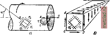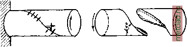 Главная --> Промиздат --> Коэффициент поперечной деформации *) В последнее время в советском машиностроении допускаемый угод вакручивании [f] принимаегся до 2 на погонный метр длины вала. Для сечения на расстоянии х от опорного сечения этот угол поворота мы обозначали (фиг. 122) буквой 9 и называли углом закручивания. Для определения его воспользуемся равенством (11.7): Интегрируя по х, получаем (при постоянном М: При длине стержня / наибольший угол закручивания будет .между крайними сечениями (при х = 1): cp=g. (11.18) Формула (11.18) имеет вид, вполне аналогичный соответствуюнхей формуле при растяжении или сжатии. Здесь уместно указать на физический смысл величины J = -. Как видно из формулы (11.18), величина угла закручивания ср тем меньше (при данном чем больше произведение GJp - так на- зываемая жёсткость при кручении. Таким образом, Jp отражает влияние размеров поперечного сечения на деформируемость стержня при кручении. Если мы будем иметь вал с несколькими шкивами, делящими его на участки, скручиваемые различными моментами Ж, то по формуле (11.18) можно вычислить для каждого участка угол закручивания одного его конца по отношению к другому. Суммируя алгебраически эти углы закручивания для всех участков, получим полный угол закручивания для всего вала. Вычисление углов закручивания имеет двоякое практическое значение: во-первых, оно необходимо для определения опорных реакций скручиваемых стержней в статически неопределимых системах, - это редкий случай; во-вторых, умение вычислить угол закручивания необходимо для проверки жесткости вала. Практикой выработаны высшие допустимые пределы для угла 9, которых нельзя переходить, чтобы не получить нарушения работы машины. Эти пределы таковы: в обычных условиях [ср] = 0,3° на каждый метр длины вала; при переменных нагрузках [ср] = 0,25°; для внезапно (с ударом) меняющихся нагрузок [ср] = 0,15°. Иногда для обычных условий принимают [ср] = 1° на длину, равную 20 диаметрам вала ). Таким образом, размеры вала следует определять не юлько из условия прочности (11.15), но и из условия жёсткости: (11,19) Это условие часто выдвигается на первое место при длинных валах. Проверку жёсткости вала покажем на примере. П р и м е р 34. Для задачи, решённой в § 59 (пример 33), проверим величину угла закручивания вала на длине /=1 лг, модуль упругости примем равным (7 = 8 10 кг/см. По формуле (П.19) получаем: 179 000 . 100 8. 10 71 . 6,6* = 0,0075 радиана = 0,43% что превышает допустимую норму 0,3° на 1 лс. Чтобы соблюсти условие жёсткости, следует определить радиус вала из неравенства (11.19): II г тГ Мк/ откуда lY2Мк/ lY 2- 179000 . 100 - 180 viGMy 71 . 8 . 105 . я . 0,3 ~ Диаметр должен быть равен d = 14,5 см. § 61. Напряжения при кручении по сечениям, наклонённым к оси стержня. Изучая напряжения при скручивании стержня круглого сечения (§ 57), мы видели, что по сечениям, перпендикулярным к оси, в каждой точке действуют касательные напряжения т. По закону парности касательных напряжений такие же напряжения (фиг. 125 и 130) будут действовать и по продольным граням вырезанного нами из стержня элемента. Эти напряжения будут также наиболь-П1ИМИ в точках у поверхности стержня и дойдут до нуля в точках оси. Таким образом, если мы проведём сечение через ось скручиваемого стержня диаметральной плоскостью (фиг. 129), то в точках, расположенных по прямой АВ, перпендикулярной к оси стержня, касательные напряжения будут изменяться по закону п