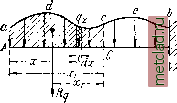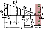Главная --> Промиздат --> Коэффициент поперечной деформации Обратим внимание на то, что в сечении, где приложена пара сил, на эпюре изгибающих моментов получается скачок на величину момента этой пары; Ма , Mb § 73. Построение эпюр Q и Л! для более сложных случаев нагрузки. Изучив общий метод построения эпюр и их свойства, перейдём к решению более сложных задач. Рассмотрим, как вычислить Q и Ж, когда на балку действует сплошная неравномерно распределённая нагрузка, интенсивность которой меняется по длине балки в зависимости от х (фиг. 165). Иначе говоря, q есть функция от g X или q - q (х). Поперечная сила у, и изгибающий момент также будут некоторыми функциями от х: М = М{х) и Q = Q{x\ Фиг. 165. Кривая adceb, показывающая за- кон изменения q (х), называется грузовой линией, а площадь, ограниченная этой кривой, - грузовой площадью. Вычислим Q и Ж в любом сечении балки, взятом на расстоянии Xi от свободного конца. Рассматривая поперечную силу как сумму элементарных сил q (х) dx, приложенных к левой отсечённой части балки, и заменяя суммирование интегрированием, найдём: ![]() Q (Xi) = - j (X) flfx = ~ J flfo) = - О) (Xi). (12.1 Здесь через (jd(Xi) обозначена часть грузовой площади, расположенная левее взятого сечения с-С. (Следовательно, поперечная сила Q(xi), равная равнодействующей сплошной нагрузки, лежащей на участке AC = Xi, может быть вычислена как грузовая площадь О) (xj), лежащая по одну сторону от сечения. Изгибающий момент в том же сечении, равный сумме моментов элементарных сил q (х) dx, действующих на отсечённую часть балки, относительно точки С, может быть вычислен и как момент равнодействующей Ry т. е. Ж (хО = - R.x, = - o> (xi). лг,. (12.13) Иначе говоря, изгибающий момент от неравномерно распределённой нагрузки равен произведению грузовой площади, лежащей ![]() нение Момент нагрузки равен моменту её равнодействующей, т. е. площади всей у нагрузки, умноженной на расстоя- ние до её центра тяжести от конца В, Равнодействующая изображена на фиг. 166 пунктиром; этим подчёркивается, ф 166 что сосредоточенная сила, равная грузовой площади w = y ql, в действительности к балке не приложена и что мы ею пользуемся для вычисления суммы моментов всей нагрузки только при определении реакций. Уравнения моментов будут иметь вид: VAJ5 = 0; Л/ -а)-/ = 0; Л = -а)=- 2:Л1л = 0; -5/ + а).4 = 0; 5 = 1(0= Таким образом, на опору А передаётся две трети всей нагрузки ш = , а на опору В - одна треть. Для построения эпюр возьмём сечение на расстоянии х от правого конца балки. Ордината нагрузки в этом сечении q{x) определяется из подобия треугольников: - -7, qW-9oj. по одну сторону от сечения, на расстояние от центра тяжести этой площади до рассматриваемого сечения (плечо равнодействующей). Пример 48. Рассмотреть построение эпюр при действии сплошной нагрузки, изменяющейся по длине балки по закону треугольника (фиг. 166). Под такой нагрузкой работают балки, поддерживающие давление воды или земли, например, стойки плотин, стойки, подкрепляющие стенки резервуаров, предназначенных для хранения жидкостей. Подобным же образом нагружаются силами инерции шатуны паровых машин и двигателей внутреннего сгорания. Величина этой нагрузки определяется ординатой - наибольшей интенсивностью нагрузки (в кг1м), Реак- , ция На = 0; определим реакции А и В, к \r~fi0,577l- Для нахождения А составим YP-i V. j ие моментов относительно точки В, -у- 1 ihhl Для вычисления Q и Ж будем рассматривать правую часть балки, так как на 