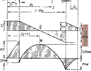 Главная --> Промиздат --> Коэффициент поперечной деформации х = 1 Л1=0. а] 48 16 Наибольшее значение изгибающий момент получит в сечении, где Q = 0, т. е. при х = - \ он равен 6 -3 \ 3J-9y-3 15,58- Эпюра показана на фиг. 166. Как видно из формулы (12.14), наибольший изгибающий момент весьма мало отличается от момента посредине пролёта, равного При практических подсчётах для балки, загружённой треугольной на- dx грузкой, всегда можно вместо Жтах вводить в вычисления момент посредине пролёта ошибка не превышает 2,67о. Пример 49. Рассмотреть построение эпюр Q и М для шарнирно-опёртой балки на двух опорах (фиг. 167), загружённой сплошной нагрузкой, интенсивность которой изменяется по параболическому за- кону, выражаемому уравнением: ![]() Фиг. 167. Вследствие симметрии опорные реакции равны между собой: Здесь w -грузовая площадь, определяемая из условия (12.12): 4 q(x)dx = -Yxdx--\- \ xdx= о 0 0 .4 / (12.15) Следовательно, реакции опор равны Это выражение для М пригодно на всём протяжении балки. Эпюра М представляет кривую третьего порядка. Для построения кубической параболы по точкам найдём несколько ординат: при х = 0 М=0; Теперь перейдём к составлению выражений Q (х) и М(х) для сечения 1-7, взятого на расстоянии Xi от левой опоры А. Обозначив грузовую площадь, расположенную на длине Хи через w (л:), получим: а) Для поперечной силы Q (л:) = Л - w (х). Грузовая площадь, лежащая слева от сечения, равна: Xi Xi Xi ьу{х)= q(x)dx= {xdx---xdx, 0 0 0 xlxj 2 3/ 3 /2 (3/-2л:0. Подставляя найденные значения А и ы (х) в уравнения для Q (х), найдём: Q()=l 2if!(3/ 20. (12.16) б) Для изгибающего момента, имея в виду, что элементарная сила q (х) dx даёт относительно центра тяжести сечения 1-1 момент, равный: dM = q (х) dx (Xi - л:), найдем: М{х) = = Axi q Я {х) {Xt - x)dx = Лх,- q{x)x dx Первый интеграл равен Второй интеграл даёт: Xi Xi После подстановки получим: M{x)=.Xi- -(3/-2x,)-(4/-3x.) Ml (6/ 4xx-4/ + 3xi) или после выполнения действий: M(x)=.Xi-g-i2l-Xiy (12.17) Из уравнений (12.16) и (12.17) видно, что поперечная сила изменяется ПО закону кубической параболы, а изгибающий момент - по параболе четвёртой степени. § 73] построение эпюр Q а М для более сложных случаев 245 Для построения этих кривых по точкам дадим переменной х значения: х = 0; Qix) = ; М(х)=0; I , q l 2 21 п ... . до! ЧоР 3 , 5 x = l: Q(x) = f-lq,l = -f; M(x) = af-3f = 0. Соответствующие эпюры Q и М построены на фиг. 167. Наибольшие значения Q и М соответственно равны: max Q = и max М = qol. Пример 50. Рассмотреть построение эпюр Q и М для балки, нагру-1Н0Й сосредоточе q = 2 т/м и naj чертеже (фиг. 168). жённой сосредоточенной силой Р = 2 г, равномерно распределённой нагрузкой q = 2 т/м и парой сил с моментом Мо = 16 тм. Размеры показаны на