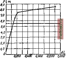 В таблице 1 даны результаты одного из опытов, произведённых в механической лаборатории Ленинградского института инженеров путей сообщения; растяжению подвергался стержень, вырезанный из рельса; нагрузка, при которой было произведено первоначальное измерение длины между двумя намеченными точками, равнялась 0,5 г. Далее эта нагрузка увеличивалась ступенями тоже по 0,5 т. При каждом увеличении нагрузки измерялось специальным точным прибором, называемым тензометром, приращение А длины / (100 мм) между намеченными точками. Таким образом, например, при увеличении от 1,5 до 2,0 т эта длина увеличилась на Величины этих при- ращений Л при каждой ступени нагрузки даны в таблице 1. Фиг. 8. Таблица 1. Данные опытных наблюдений.