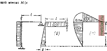 Фиг. 173. = 0, то Q = const. Следовательно, на 3. Если q - , т. е. участках, свободных от сплошной нагрузки, эпюра Q ограничена прямыми, параллельными оси х\ эпюра же моментов изобразится Таблица 19. Данные к фиг. 172. ![]()