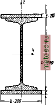 Главная --> Промиздат --> Коэффициент поперечной деформации iSl [Oj получаем: -,У32М 7-32-167 ООО Пример 60. Двутавровая балка >fe 45 пролётом / = 6 шарнирно опёрта по концам и несёт равномерно распределённую нагрузку = 2 т1м (включая и собственный вес). Какой сосредоточенный груз Р можно дополнительно приложить к этой балке на расстоянии а==- от левой опоры при допускаемом напряжении [о] = 1400 K2lcM> Для определения величины добавочного груза Р необходимо найти величину наибольшего изгибающего момента в функции от Р и . Сечениями, где M = Mj предположительно могут быть: сечение в точке приложения силы Р, где изгибающий момент от этого груза достигает максимума; сечение посредине пролёта, где мы имеем Aijnax распределённой нагрузки, и, наконец, сечение 3-3, расположенное между первыми двумя. Опорные реакции будут: левая Л = + = + 1р. ql , Ра ql , Р правая В= + - =:Ц-\--. Изгибающий момент в сечении / - / под силой =(т+1 ) I - f 4=I +й =(-5+ 25) в сечении 2-2 посредине пролёта: Iql , Р\ I ql I ql PI , -.ч Для промежуточного сечения 3 - 5, проведённого в расстоянии х от правой Взяв производную от Мз по л: и приравняв её нулю, найдём абсциссу x = Xq сечения, где = Mj: = -.-. + = 0. охкуда = 4 + Подставляя полученное значение дг, в выражение для Afj, получим: ql I I , Р\ д ( I , ру , Р 11 ,Р\ (l,P\lql ql Р,Р\ 11,Р\1я1,Р\(о,Р\*М Наибольший изгибающий момент равен M3=Pa = 6,25 .0,267 = 1,67 тм. Момент сопротивления сечения \==. Из условия прочности ni § 90] ПРИМЕРЫ Величина допускаемого изгибающего момента должна быть: [Л1][а1.и= 1400.1220= 17,1.10 кгсм=\7,\ тм. Приравнивая это значение момента полученным выражениям для Mi и Л1 находим три значения силы Р: 1,125 2- Рз=(>АЩ з).8 = 9,1 г. Наименьшее из этих значений и будет допустимым: Р = 9,1 т. Пример 61. Подобрать двутавровое сечение балки на двух опорах пролётом 1=4 лг, загруженной равномерно распределённой нагрузкой =2 tjm и сосредоточенной силой посредине пролёта Р = 5,3 г при допускаемом напряжении [а] = 1600 кг/см. Вследствие симметрии изгибающий момент будет иметь наибольшее значение посредине пролёта. Величину его найдём по методу сложения действия сил, пользуясь выражениями (12.10) и (12.11): + = 9,3 тм = 9,3. 105 см. 5,3-4 Из условия прочности необходимый момент сопротивления сечения балки: 930000 1600 = 580 см\ ![]() Ближайший по сортаменту (ГОСТ 8239-6) номер профиля, удовлетворяющий этому условию, двутавр Jsfe 33; Vr = 597 сл£ (см. приложение IX, табл. 3). Пример 62. Какую равномерно распределённую нагрузку можно приложить к мостовой балке пролётом / = 10 Л£, свободно лежащей на двух опорах, при допускаемом напряжении [а] = 1400 /сг/см? Сечение балки состоит из двутавра 60, усиленного двумя Фиг. 208. приваренными к нему листами 200 х 20 мм (фиг. 208). Момент инерции сечения балки относительно нейтральной оси у определяется как сумма моментов инерции двутавра и двух листов полок. Для определения момента инерции полок воспользуемся формулой перехода к параллельным осям; для двутавра - по сортаменту (ГОСТ 8239-56): :75 450 + 2 20.2 12 + 20.2 (30 + 1)2 = 152 500 см*. Момент сопротивления сечения равен: , Jy 152 500 3 U7=-=-- :tf4770 см. Наибольший изгибающий момент -Мгпах= g условия прочности отк\да ,8 fal . \Г 8 - 1400.4770 10-. 100 ; 53,5 кг-см = 5,35 г/ж. Имея в виду, что вес двутавра составляет 104 кгсм (см. приложение IX, табл. 3), а двух листов 2 20 2 100 0,00785 = 63 лгг/лг, получаем собственный вес балки 104 + 63= 167 лгг/л/; тогда допускаемая (полезная) нагрузка будет: q z= 5350- 167 == 5183 кг!мЪ,2 т;м. Пример 63. Определить момент инерции и момент сопротивления сечения, изображённого на фиг. 209, о