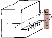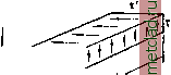 левой, то к правой части действуют такие же каса- левую часть балки. На неё будут действовать изгибающий момент М и поперечная сила уравновешивающиеся нормальными и касательными напряжениями. Примем, что Ж М/ и Q положительны (фиг. 212). Нормальных напряжений изображать не будем; касательные же напряжения будут направлены по проведённому сечению вниз. Проведём очень близкое смежное сечение /-/ на расстоянии dx от 2-2. Относя выделенный элемент /-/-2-2 то балки, получаем, что по сечению /- тельные напряжения т, как и по сечению 2-2, но направленные в другую сторону. Разницей в величине сил Q для сечений /-/ и 2-2, которая имеет место при наличии сплошной нагрузки, пренебрегаем по её малости. По свойству парности касательных напряжений [гл. VII, § 36, формула (7.8)] следует ожидать появления таких же касательных напряжений по площадкам, перпендикулярным к сечениям балки, т. е. параллельным оси х. Поэтому, если мы на расстоянии z и z-\-dz от нейтральной оси проведём два горизонтальных сечения балки и таким образом выделим элемент с рёбрами dz, dx, b (фиг. 213), то на этот элемент будут действовать касательные напряжения т по вертикальным граням и равные им по величине касательные напряжения т по горизонтальным граням. Так как продольные волокна балки при деформации не давят Друг на друга, то по сечениям балки, параллельным оси, нормальных напряжений не будет, а будут одни касательные т. Заменим вычисление касательных напряжений т по сечению, перпендикулярному к оси, вычислением равных им напряжений т по сечению, параллельному оси, взятому на том же уровне (фиг. 214). ![]()